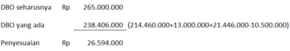 | Nilai kini kewajiban pensiun | Rp | 214.460.000 | |