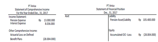 Pada Bab 3 Laba Rugi dan Informasi Terkait, kita telah mampu memberi contoh komponen laba komprehensif lainnya (Other Comprehensive Income/OCI). Salah satunya adalah “Actuarial Gains and Losses on Defined Benefit Plans”, di bab inilah kita akan menemukannya. Jika perhitungan kembali dengan asumsi aktuarial menyebabkan saldo kewajiban pensiun berubah atau terdapat perbedaan antara tingkat hasil yang diharapkan dan aktualnya, maka selisih ditampung ke OCI tersebut. Perubahan kewajiban pensiun menggunakan perhitungan aktuarial tertentu dengan memperhatikan asumsi mortalitas, perputaran karyawan, tingkat bunga, situasi ekonomi, regulasi, dan lainnya. Sebagaimana akuntan dan penilai, aktuaris juga profesi penunjang yang penting dalam bisnis.