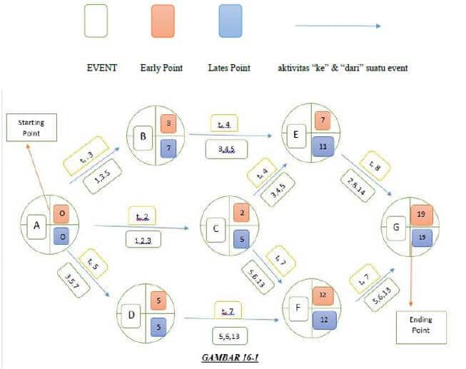 - Jaringan PERT telah diilustrasikan dalam gambar 16-1