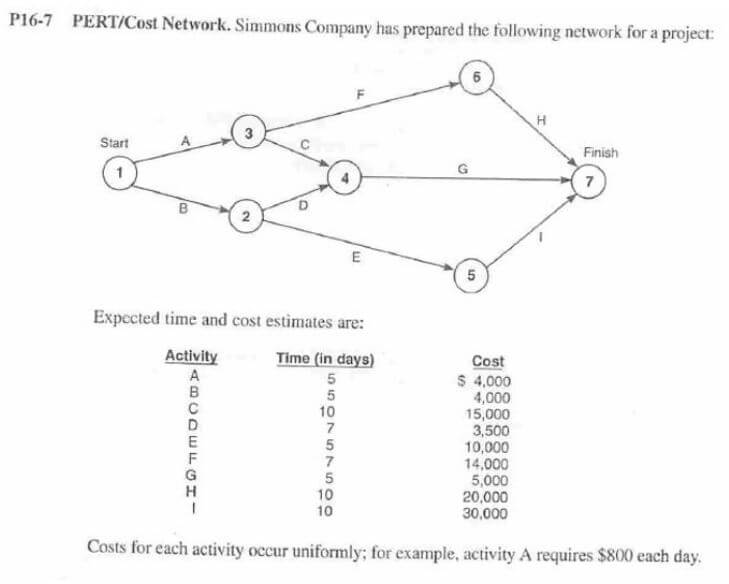 Di soal diatas juga ada Expected time dan cost estimates yang berarti dalam setiap aktifitasnya terdapat estimasi waktu dan estimasi biaya.